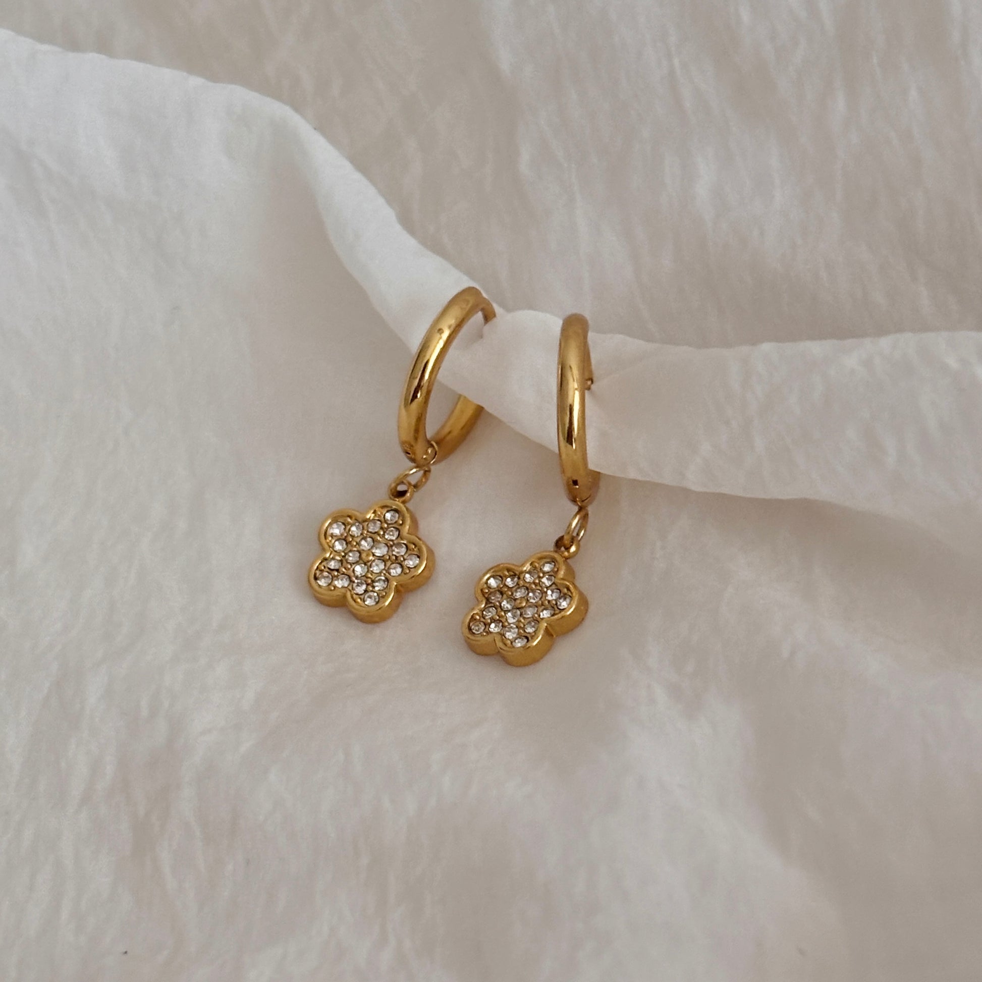 Sparkle clover huggie earrings - 18k gold plated